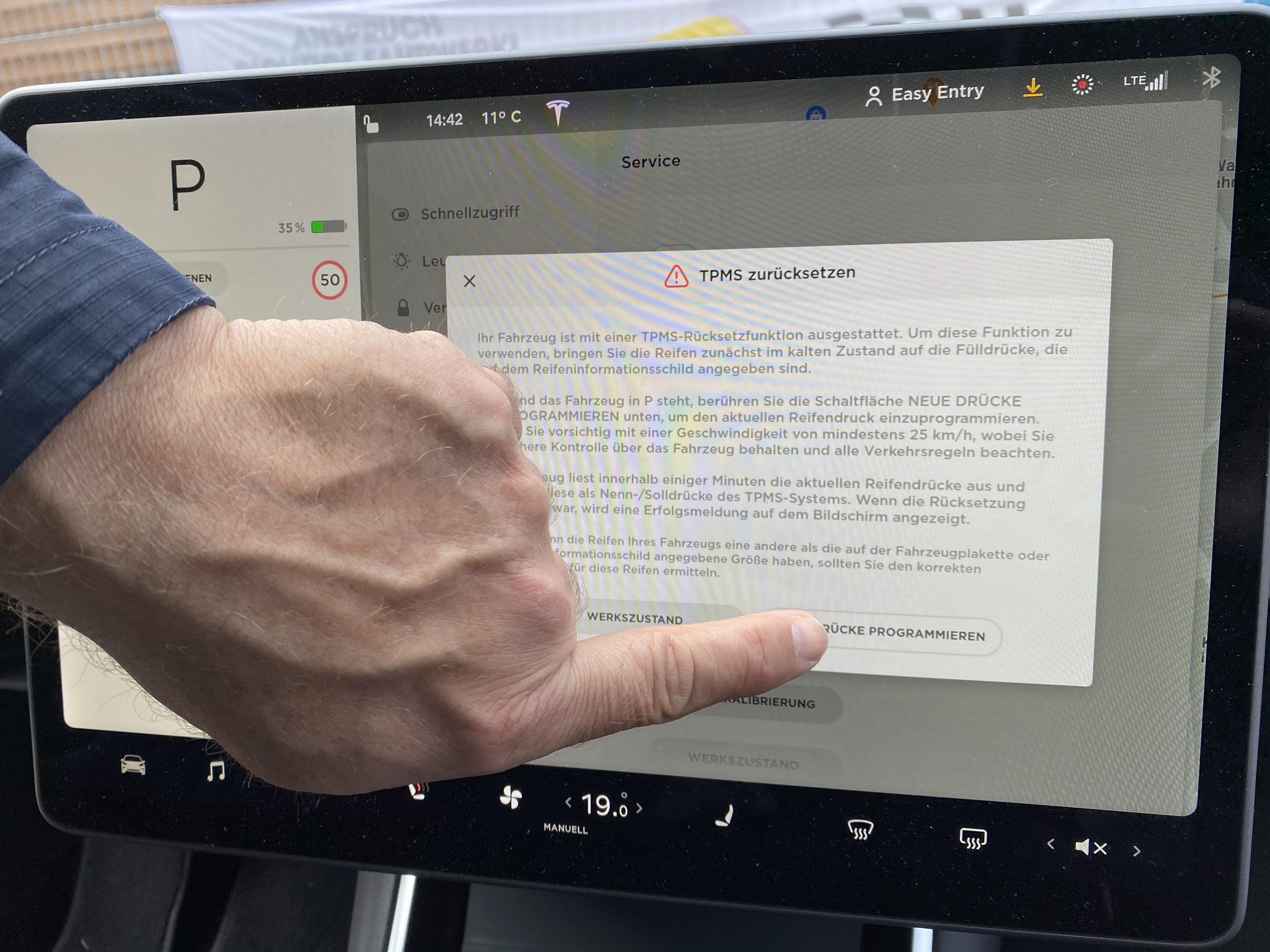 Reifendruckkontrollsystem Reset für Model 3 vor Refresh